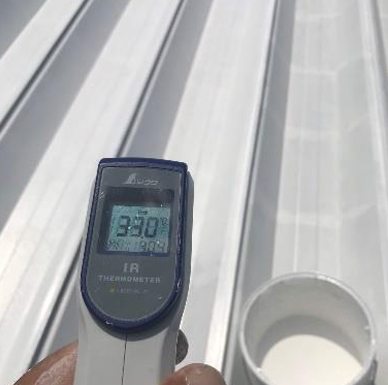 塗装後、屋根の表面温度が約20度℃下がり、屋根の内側温度が約13度℃低下。室内温度が6度℃低下。